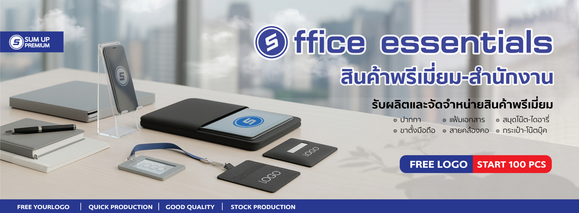 SUM UP PREMIUM ศูนย์รวมของพรีเมียมคุณภาพ ที่มีสินค้าให้เลือกหลากหลาย ไม่ว่าจะเป็น แก้วน้ำเก็บความเย็น กระบอกน้ำสแตนเลส แฟลชไดร์ฟ พาวเวอร์แบงก์ ปากกา สมุดโน้ต ร่ม ไปจนถึงกระเป๋าผ้า ทุกชิ้นสามารถสกรีนโลโก้หรือออกแบบได้ตามความต้องการของลูกค้า โดยมีทีมงานออกแบบพร้อมให้บริการ ฟรี! ไม่มีค่าใช้จ่ายเพิ่มเติม