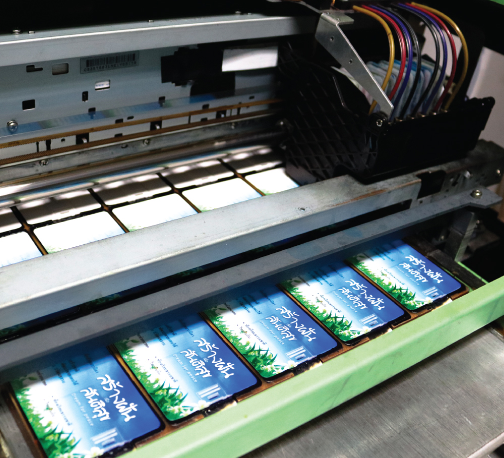 เป็นการพิมพ์ภาพหรือโลโก้แบบภาพเสมืองจริงเหมาะสมกับผลิตภัณฑ์ผิวเรียบ เช่น แฟลชไดร์ฟการ์ด , เพาเวอร์แบงค์
