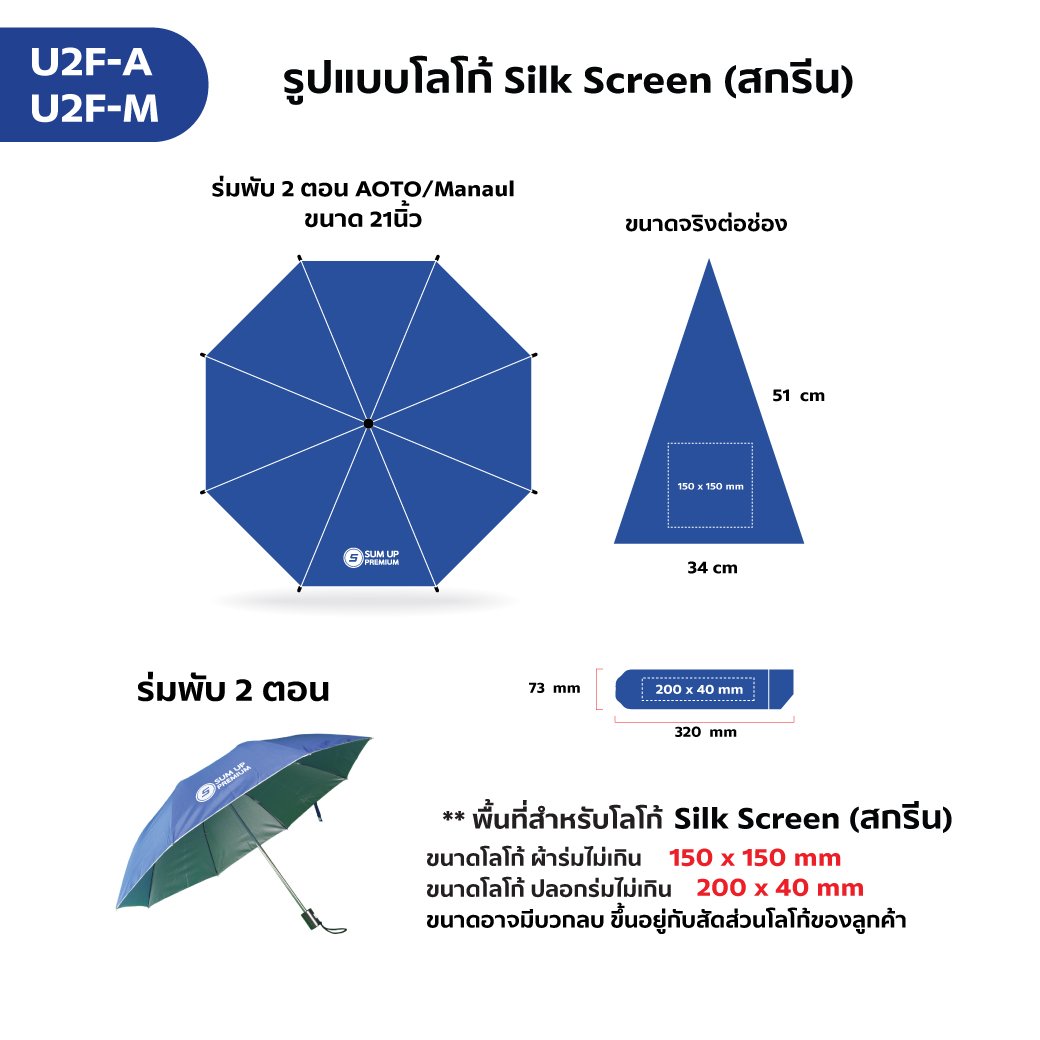 U2F-M ร่มพับ 2 ตอนขนาด 21 นิ้ว