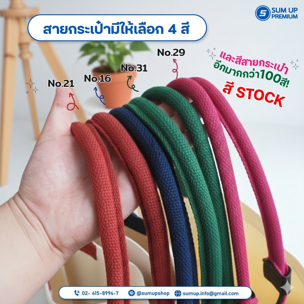 สีสาย : เขียว / น้ำเงิน / แดง / ม่วง / ส้ม / ฟ้า